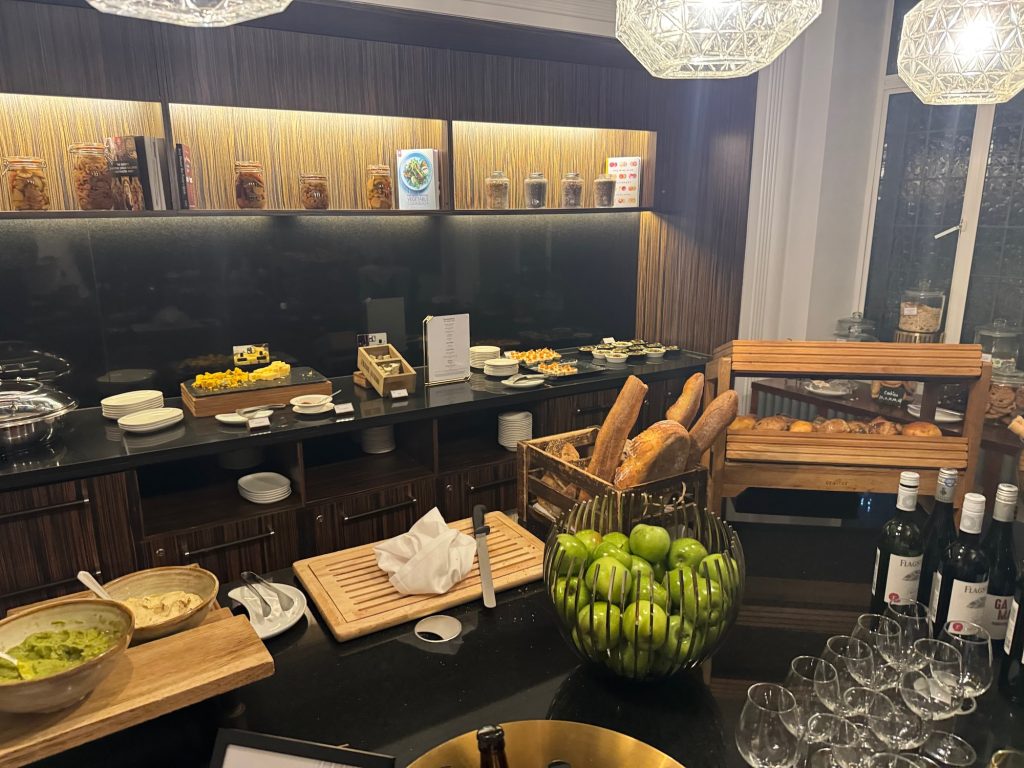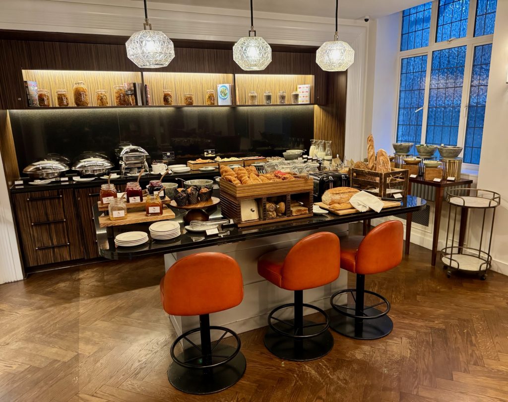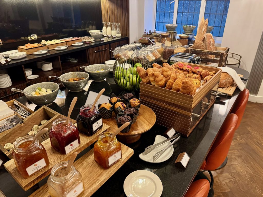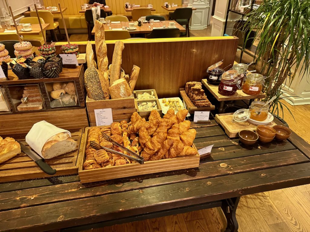 In the morning, breakfast is served, with freshly baked pastries, seasonal fruit, and hot à la carte items available alongside barista-style coffee.