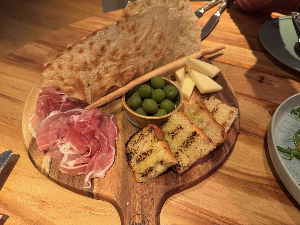 The menu champions Mediterranean flavours, and we instantly bonded with our server over a shared love of Sardinia, her home region. We began with the charcuterie board, which arrived piled with prosciutto, aged cheese, grilled focaccia, and plump green olives, while the polenta fries with truffle mayo added a crispy, earthy contrast.