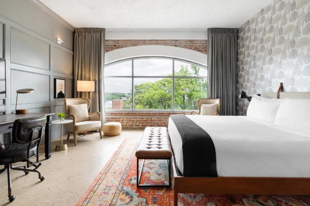 Ideally located on Memphis’s bustling Main Street, ARRIVE Memphis offers a unique stay in style. There are 62 contemporary guestrooms including a selection of studios and the spacious corner loft which features a marble-accented bathroom and provides panoramic views of the city. Each room has all of the modern comforts for your stay and include a complimentary Marshall Bluetooth Speaker, Apple TV and a field guide to help you make the most of your stay. Guests can enjoy the offerings of the all-day bakery and café at Hustle & Dough or something more substantial at the lobby cocktail bar, Bar Hustle, which serves cocktails, pizza and smaller dishes. The hotel’s fully equipped fitness centre boasts a Peloton Bike among its equipment. The hotel makes the perfect venue for functions and offers meeting and two private event spaces for up to 110 guests.