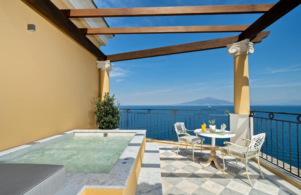 According to legend this hotel is built on a site which was once home to sirens, dangerous creatures who lured nearby sailors to shipwreck on the cliffs with their enchanting music and voices. Whilst you may see some beautiful people with flowing tresses around the hotel, it’s more likely the jet set and Hollywood A-listers these days. This flamboyant hotel is brilliantly OTT in a truly classic Italian way. Interiors are bold and vibrant, taking inspiration from the natural beauty of the surrounding Sorrento. The hotel’s not short on facilities either with a spa, a gym, manicured gardens, a library, a sunbathing platform, a restaurant, a bar, and a club lounge all on site. We would recommend the Superior Sea Rooms for their sophisticated Italian elegance, opulent chandeliers and antiques, and of course, those incredible views over the Gulf of Naples.