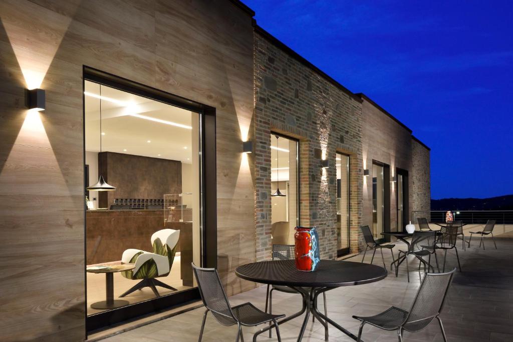 Stay a little further out of town (but just a 15-minute drive from the airport), among the region’s vineyards. The Borgobrufa Spa Resort is only for adults and encompasses 29 acres. The architecture blends seamlessly with the traditional buildings, yet is fully fresh and modern. Some of its 50 rooms have private terraces with pools, and in-suite jacuzzis or alfresco hot tubs. Swim in the outdoor hydrotherapy pool, book a couples’ massage and dine by candlelight, sampling produce from the grounds. The food at Borgobrufa is gourmet and beautifully presented.