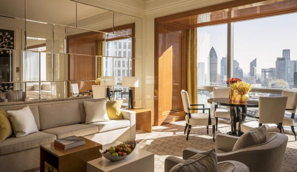 Where Nanjing Road meets Binjiang Avenue, you’ll find the Four Seasons. Everything you need is on the doorstep, be it shops, bars, or fast transport links. And inside, West meets East in the decor, the food and the service standards. The hotel has 259 elegant bedrooms and suites, five dining options, a swanky spa and a state-of-the-art fitness centre. A real highlight is the indoor pool, flooded with natural light from above by day and revealing a starry vista by night. Notable event spaces are its two glitzy ballrooms and there’s an Executive Club Lounge for higher category guests and ideal for business travellers.