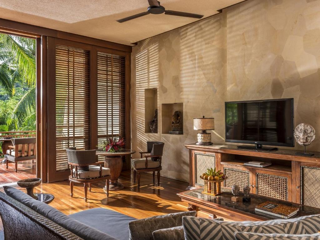 Arrive among the tropical treetops via a dramatic suspension bridge. This stunning property is set on the banks of the Ayung, where guests are blessed with holy water before being taken to one of 60 suites graced with teak and beds draped in a white flowing net. Daily activities include yoga, life talks, village walks, cycle tours and traditional Balinese dance performances, plus there’s the infinity pool, Sacred River Spa and two restaurants serving authentic Indonesian and Mediterranean food. For an extra special dining experience, ask for a table by the candlelit water’s edge at the intimate Riverside Café.