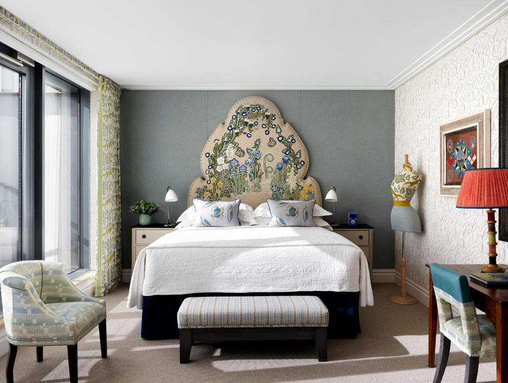 Step away from the urban sprawl and into an urban oasis; the tree-filled garden at Ham Yard features a bronze sculpture centrepiece by Tony Cragg. Inside you’ll find eclectic interiors by designer Kit Kemp, with vintage elements, bold patterns, bright colours and an array of art. Each room has its own personality, alongside handmade mattresses, rain showers and custom-designed furniture. Dine in a rooftop terrace bar, the Mediterranean-inspired Orso restaurant and take drinks in the bar. Guests also have access to a screening room, a spa and a fitness centre, plus a bespoke hat service where you can design their own headwear.