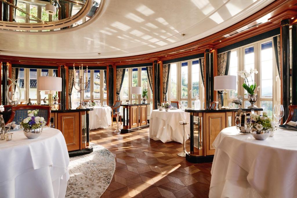 Features a Two-Michelin-Starred Restaurant, a Traditional Kaminstube, a 5,000 M² Spa with indoor & Outdoor Pools, a Fitness Centre, & a Tennis Court