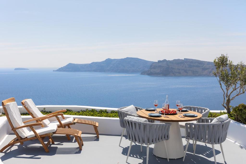Located in the picturesque village of Oia, this five-star resort is made up of individual dug-out cave houses all oozing minimalist elegance. Room décor really speaks for itself here where Scandinavian cool combines with classic Aegean white and blue. Calming tones of steel grey, brown and white are in abundance and beds are decked in natural fibre soft furnishings. The 11 suites date from pre-1956 and have outdoor spaces boasting lovely views of the bay. Some even benefit from private spa tubs for soaking up the sweeping panoramas. Breakfast is served on your terrace in an hour of your choosing before guests can make use of the fair sized communal plunge-pool on the lowest terrace. Whilst the hotel doesn’t have its own restaurant, it’s just a 15-minute walk to the centre of Oia where there are plenty of options and staff are happy to make recommendations.