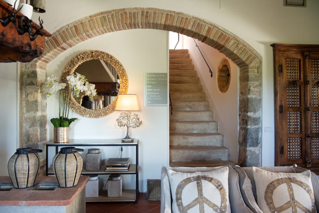 Located in Chianti, one of Tuscany’s most breathtaking regions, Locanda Le Piazze has been designed with Tuscan tradition in mind, tweaked with a contemporary twist and furnished with European antiques and handpicked furnishings from across the globe. Surrounded by olive and strawberry trees, rosemary, laurel, and oleander, this renovated farmhouse is nestled in the rolling hills of a renowned wine region. Guests can breathe in fresh air from the outdoor dining terrace, the tranquil poolside area, or the perfectly kept gardens overlooking Chianti Classico vineyards. Locanda Le Piazze strives to provide an authentic and luxurious retreat with a focus on local tradition and eco-friendliness, as envisioned by founder Natacha Fazal-Karim.