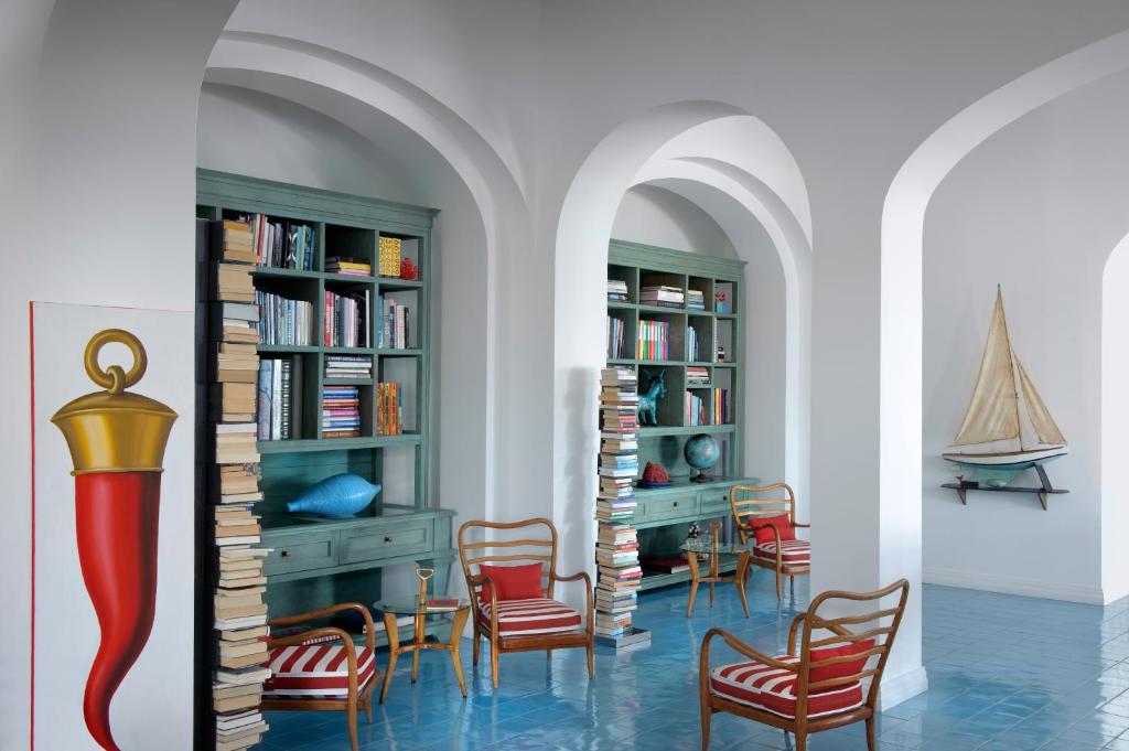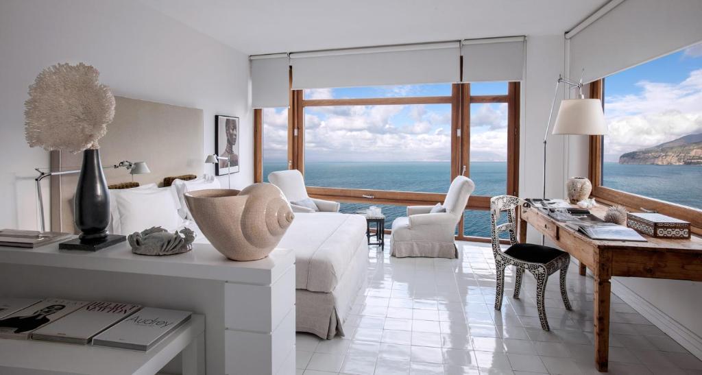 Arguably one of the most stylish hotels in the area, we love this boutique hotel for its refreshing, breezy feel, perfect for escaping that Italian heat. Located right above Sorrento’s original fishing port, hanging onto the cliffs, La Minervetta is owned (and designed) by architect Marco de Luca and has the perfect contemporary nautical look for your ideal summer, seaside retreat! Walls are painted white throughout, whilst hand-painted Vietri tiles and colourful, vibrant ceramics and textiles really make the rooms pop. Many of the rooms have huge picture windows offering unrivalled scenes of the Gulf of Naples whilst open-plan public spaces with comfy sofas offer plenty of opportunities to sit back and relax. This hotel truly feels like someone’s (very stylish) seaside home, with the added luxuries of a sun terrace, a bar, a pool and a small whirlpool tub.