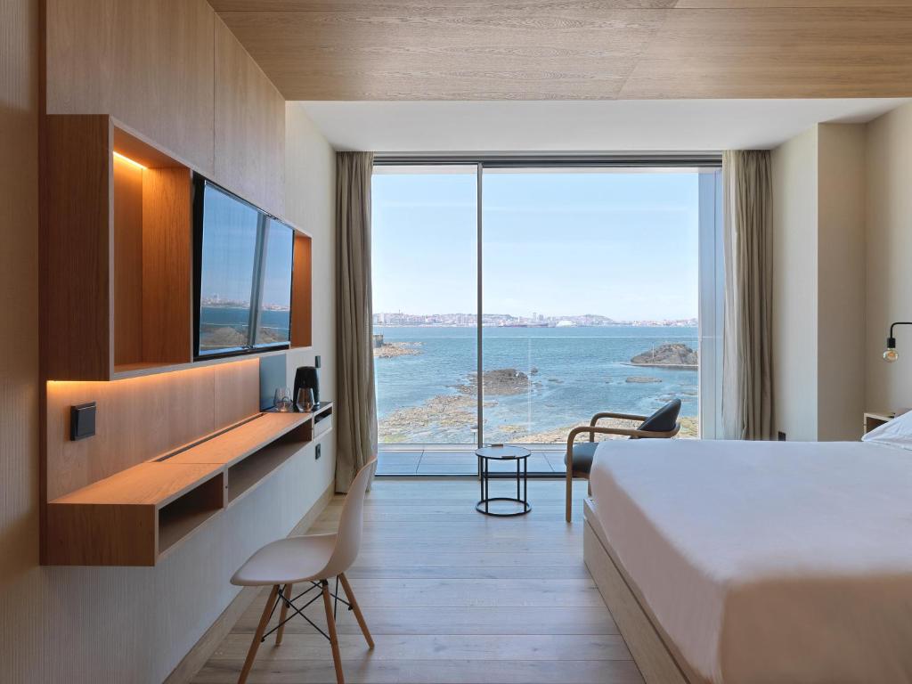 Very sleek and modern, with a hint of urban chic and simple Scandi design influence, this stylish boutique hotel has a bayside position in Santa Cruz de Oleiros, close to La Coruña’s centre. It’s fully committed to sustainability, with a strong environmental focus — geothermal energy is used throughout. 32 airy, open-plan bedrooms have extra long beds, blackout drapes, terraces and floor-to-ceiling glass windows. NOA Gastro Lounge is its award-winning restaurant, complemented by the alfresco NOA at la Taberna. Climb to the rooftop to experience the highlight of an Insta-perfect infinity pool and jacuzzi. Noa Boutique Hotel also offers in-room massages, a gym and a Wellness Club.