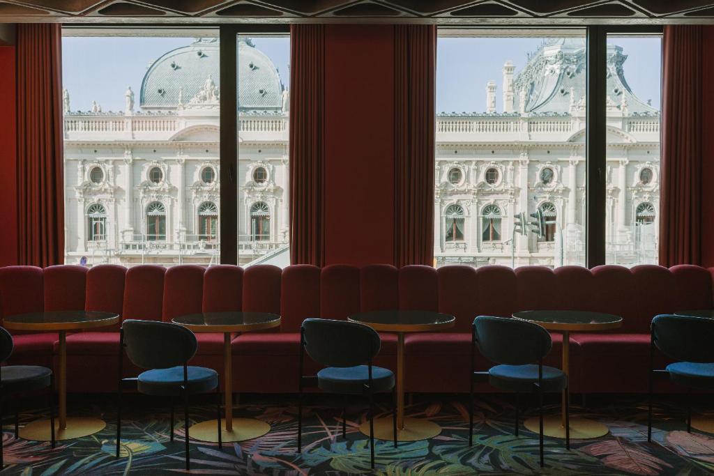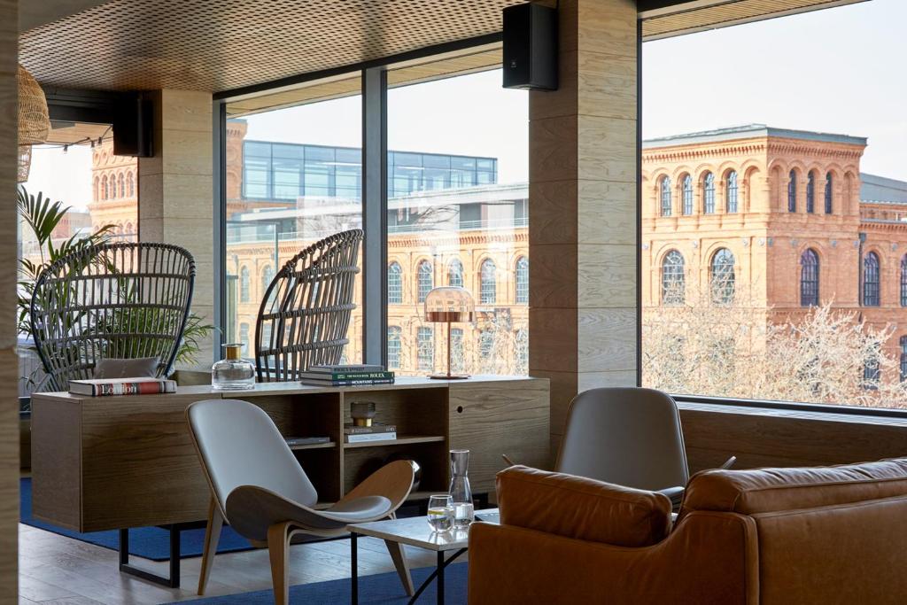 Some of the UK’s leading designers were employed to create the bold interiors here, to the brief of functional minimalism. Its 136 bedrooms are arranged over six floors, with views of the red brick industrial complex, or neo-Baroque palace from most of them. The URO Hotel has three restaurants, including a rooftop bar and garden, the chain’s signature Prisma Spa and an onsite cinema to which only hotel guests have access. The hotel features a diverse art collection, curated using the works of some of the most interesting national artists.