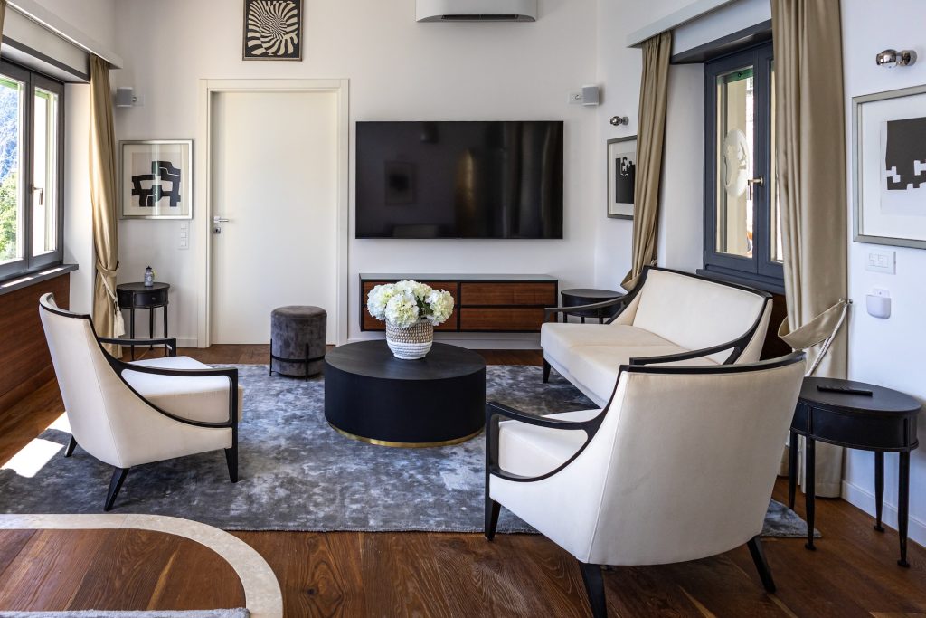 The estate dates back as far as the 13th century and showcases the exceptional craftmanship and rich history of the region. San Sebastiano Sirreti’s exquisite Lombard architecture and interior boast Art Deco features from the 16th and 20th century. The estate was thoughtfully restored by the European Heritage Project and is beautifully decorated with Italian artworks and antiques. Today, the estate is perfectly suited to modern life thanks to its contemporary touches and luxurious amenities.