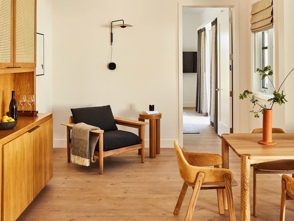 Palm trees stand sentinel at the end of the pool, with neatly arranged plush sun loungers and angular parasols in front of a mountainous backdrop creating an aesthetic that wouldn’t be out of place in – not so far away – Los Angeles. There are another six pools at Solage – one for kids and five geothermal pools in the spa. Rooms here have a calming, minimal feel and botanical toiletries, while some have outdoor patios with sofas, fire pits and hot tubs. Farm-fresh fine cuisine is served in the restaurant, with snacks and drinks available on the terrace during the day.