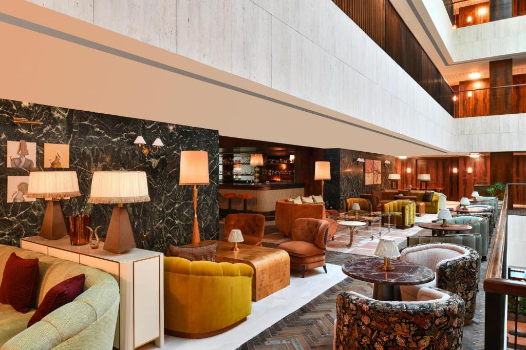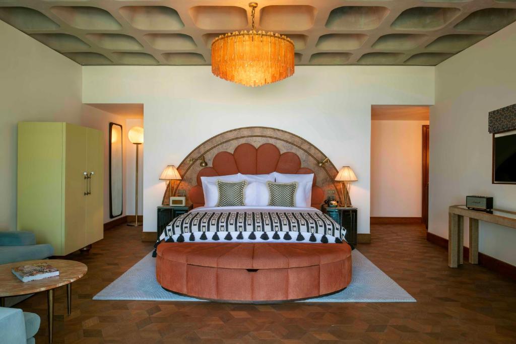 The Ned Doha, set in Qatar’s former Ministry of Interior overlooking the Arabian Gulf and Doha skyline, combines luxurious accommodations with extensive amenities across five floors. It features 90 rooms, including suites with panoramic views, and six diverse restaurants offering everything from Northern Italian to Pan-Asian cuisine, all Halal. The design, revitalised by David Chipperfield Architects and inspired by the glamorous 1970s, showcases rich materials like green marble and terrazzo flooring. Key facilities include a live performance stage, a health club with a spa, and a new event space. Additionally, The Ned Doha houses an art collection focusing on local and regional artists, enhancing its cultural footprint.