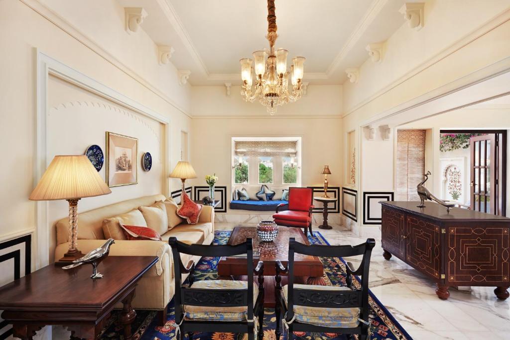 The nearby palaces and traditional Mewari architecture served as the inspiration for Nimish Patel, as she designed this grand lakeside property from scratch. It spans 50 acres teeming with birdlife, featuring pastel-coloured and gilt domed pavilions housing 87 rooms, a spa and several restaurants. The decor provides an old-world elegance, while staff offer an attentive first-class service with personalised and lavish attention to detail. Dine alfresco by candlelight beside a lily pond, relax next to your private plunge pool beneath a mustard-hue fringed parasol, book some Ayurvedic treatments, take a yoga class and spend some time reading in the library.
