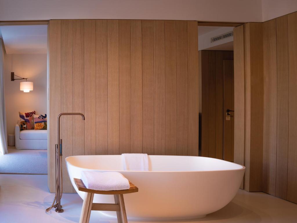 Book one of 53 bedrooms and suites here, including the anything-but-standard 14-bedroom Casa Privada, a private residence for you and your pals to plunge into a private pool and hot tub within your own courtyard, enjoy an exclusive in-suite treatment room and sleep serenely in a separate building from the rest of the rabble. In the main hotel, the leafy rooftop accommodates a 15-metre swimming pool, bar and eatery with Mexican dishes and Wagyu beef. And downstairs there’s the Jara bistro spilling onto Plaza Vara de Rey, with a DJ booth for a funky soundscape. From April to November the hotel is for adults only.