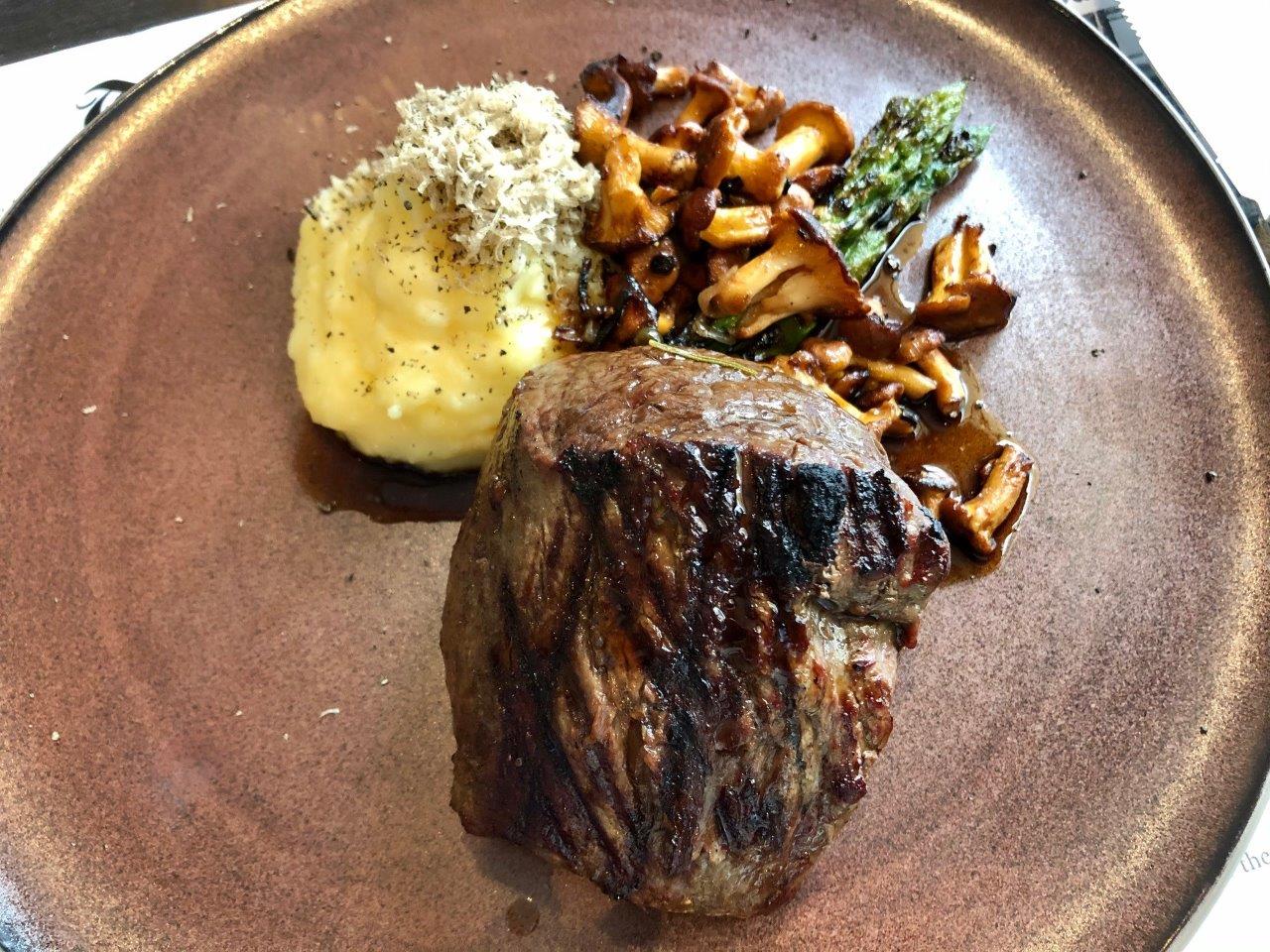 Steaks include Rib Eye, T-Bones, Tenderloins, and even 1200 gram Porterhouse steaks. Yet we opted for the classic Filet Mignon, an elegant and tasty choice.