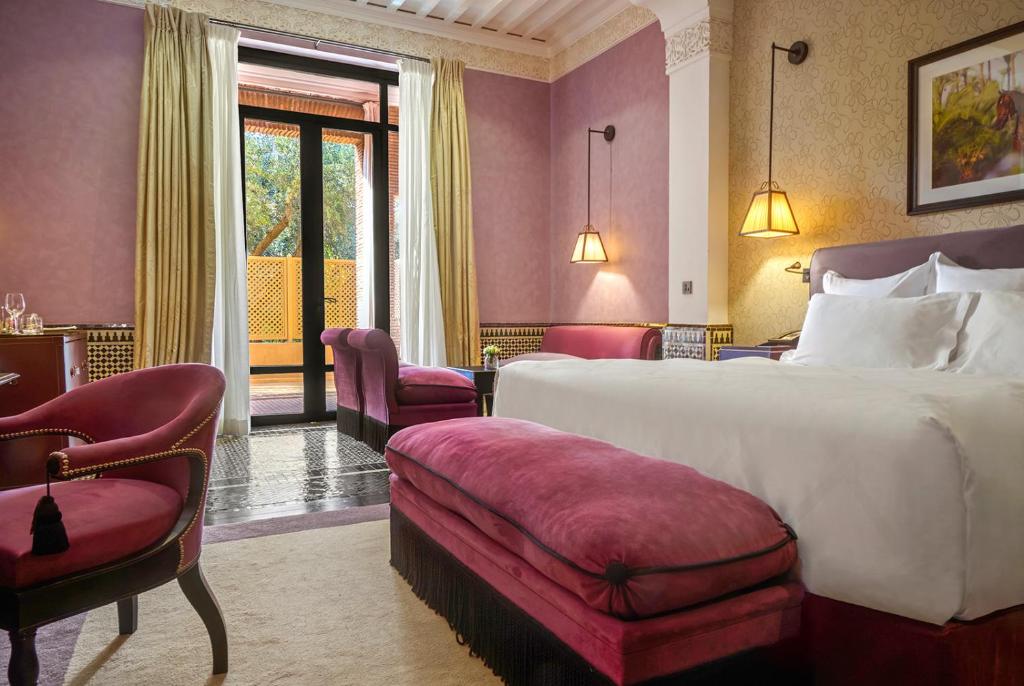 (5 stars)Art, French luxury and Moroccan culture are the key principles at the heart of this hotel’s design and philosophy. It’s located in the Hivernage district, with views of the Atlas Mountains. The minimalist chambers are bathed in white textiles, with tataoui bedheads, MyBed double beds, BOSE sound systems, espresso machines and Hermès toiletries products. By contrast, the styling in the spa takes on a more traditional theme, with mosaics and lanterns inside the pool area and an outdoor terrace that’s evocative of a Majorelle garden. Sofitel also offers a gym, an outdoor pool and bars.