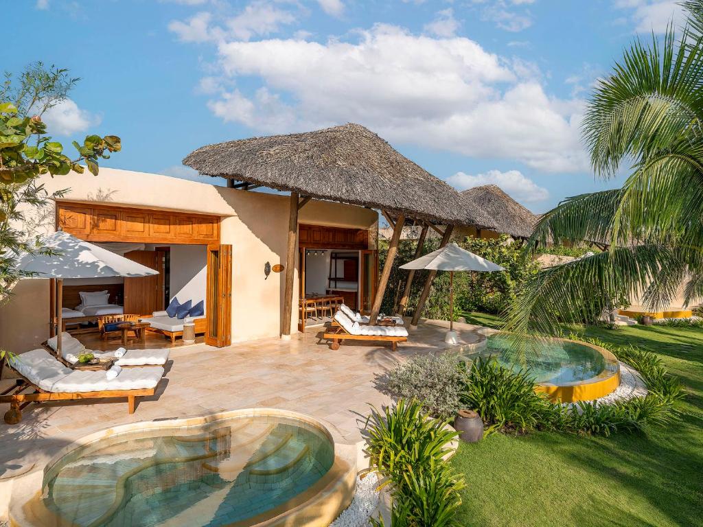 (5 stars)Curved lines dominate the architecture at this beachfront resort. Many of the villas also take cues from the Vietnamese non-la conical hat, topped with circular thatched roofs (all have garden or sea views and private plunge pools too). Indoors, everything is airy, with a contemporary barefoot chic vibe and features like bamboo canopies containing cloud-like bed drapes. Guests can eat and drink at the Ana Beach House, Ana Sand House and the Sunken Pool Bar, swim in the lagoon-like pool and enjoy treatments at the spa, which make use of Om Fountain massage oils.