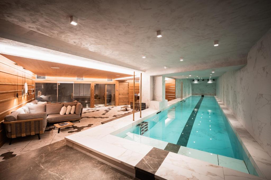 (5 stars)With just four private luxury chalets to choose from, guests at Hotel Village La Mourra can be sure that they will be treated to an intimate atmosphere and a personalised service. Indulging in treatments in the My Blend by Clarins is the perfect way to unwind after spending the day on the slopes, while guests are also treated to a sauna and steam room to unwind in. the hotel also comes complete with a seventeen-metre pool, while a team of physiotherapists and an osteopath are on hand to pamper guests from head to toe. The chalets feature beautiful marble bathrooms and large bathrooms, while the reclaimed wooden furniture features colourful and cosy touches. Lovers of Japanese cuisine are also sure to love the selection of dishes that are served in the cosy dining room.
