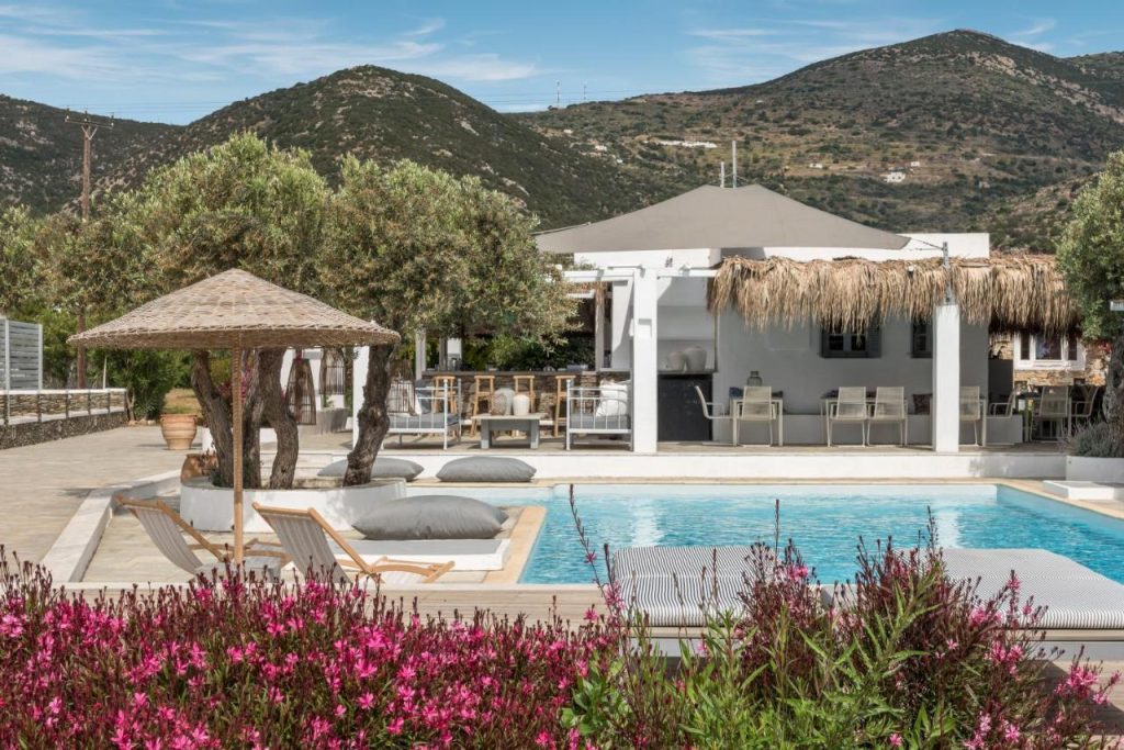 Verina Terra is conveniently located just steps from the shores of Platis Gialos beach. This setting places guests of its 11 rooms, suites, and apartments amidst olive groves, with the sea directly ahead, and within an easy walk of the legendary seaside taverns that make Sifnos a culinary haven. Enjoy a yoga session on the deck, enveloped by olive trees, or unwind by the pool while enjoying some of the island’s finest cocktails. Guests can also opt for a picnic lunch prepared with fresh produce from the on-site herb and vegetable garden to enjoy at the beach. Whatever your choice of relaxation, combining sun, sea, and Sifnos is sure to delight.