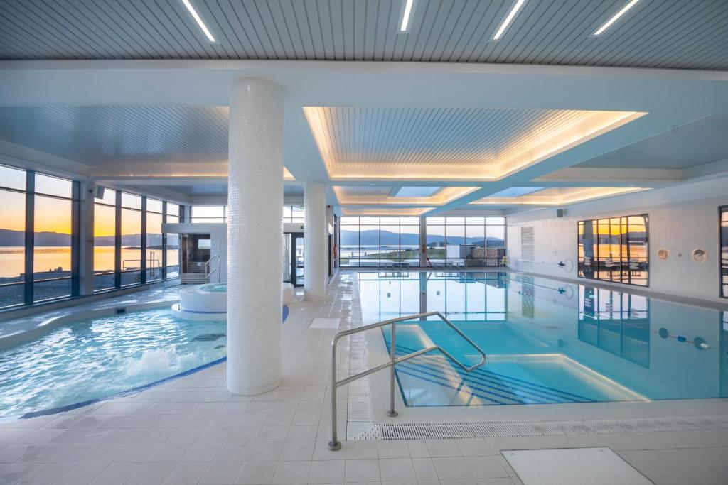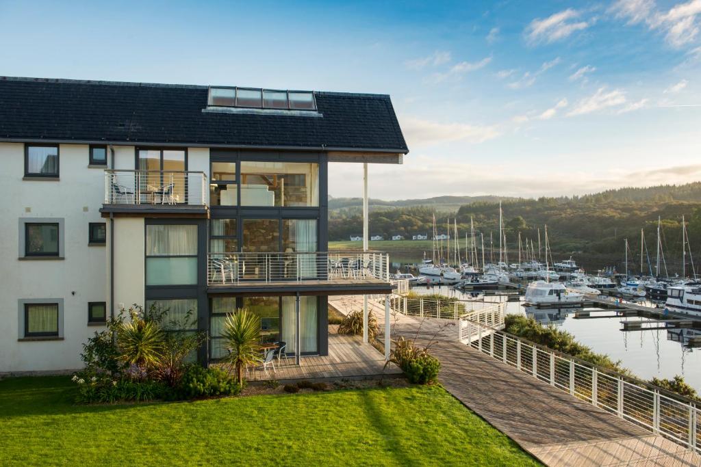 (4 stars)40 miles from Glasgow (certainly, as the crow flies) is Portavadie Marina, a resort surrounded by rolling West Coast hills and on the banks of Loch Fyne. The hotel itself is a modern and glass-fronted building overlooking the marina full of yachts and boats. The village itself is compact with not much more than a few cottages, but the resort more than makes up for that with its luxury spa and well-being facilities. After a £10 million development, the contemporary spa facility offers a 16-metre pool, fully equipped gym, sauna (with a picture window offering incredible views), Jacuzzi, and a plethora of spa treatments using Ishga products developed in the Outer Hebrides using the pure Scottish seaweed. The star of the show here however is the heated outdoor infinity pool (the biggest in Scotland) which feels like you are swimming in the loch but without the freezing temperatures!