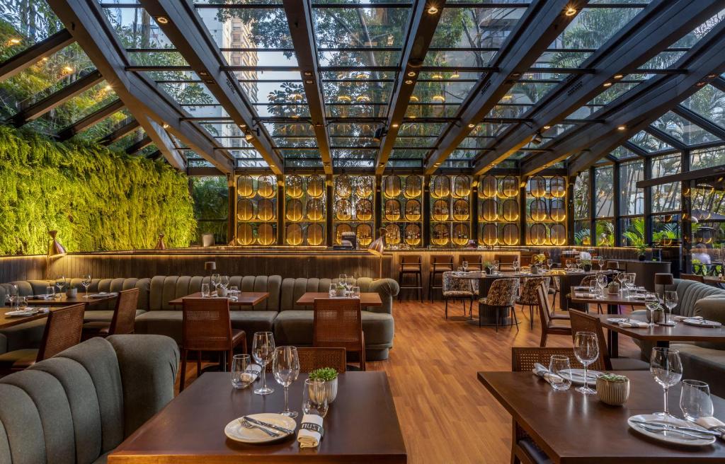 So named because of its striking exterior, this hotel is unlike any other in the city, or quite possibly, the world. Like Fasano, Unique is found in Jardins; a glass-walled, cactus-lined, long, thin rooftop pool giving an outlook over the district. This part of the hotel is the place to be at the weekends, with a legendary party vibe. Inside you’ll find architecture as surprising as the outside — a curved library, massive porthole windows and bold art installations. Don’t miss the brightly hued indoor pool; it has a slide, and, like the outdoor pool, underwater music. Unique has 94 bedrooms and suites, plus two restaurants and welcomes four-legged friends.