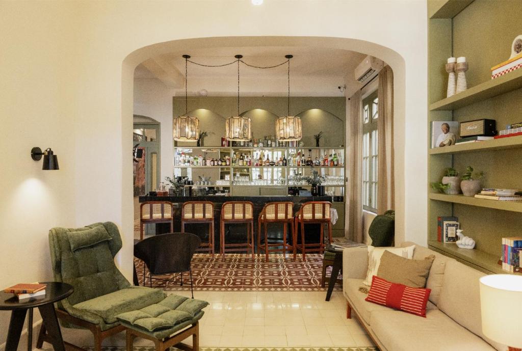 Kahal’s culinary heart lies in its light-filled restaurant and rooftop terrace, where Yucatecan flavours shine through dishes like huevos encamisados, pumpkin seed hummus, and morita chilaquiles. Guests can unwind in rooftop jacuzzis or sip regionally inspired cocktails like the Kaab, made with local gin and melipona honey. A library-bar, inner courtyard, and rotating art exhibitions further immerse visitors in the area’s culture, while bespoke tours to cenotes, archaeological sites, and haciendas reveal the surrounding landscape. Balancing heritage with modern refinement, Kahal is a soulful base for discovering Mérida’s timeless charm.