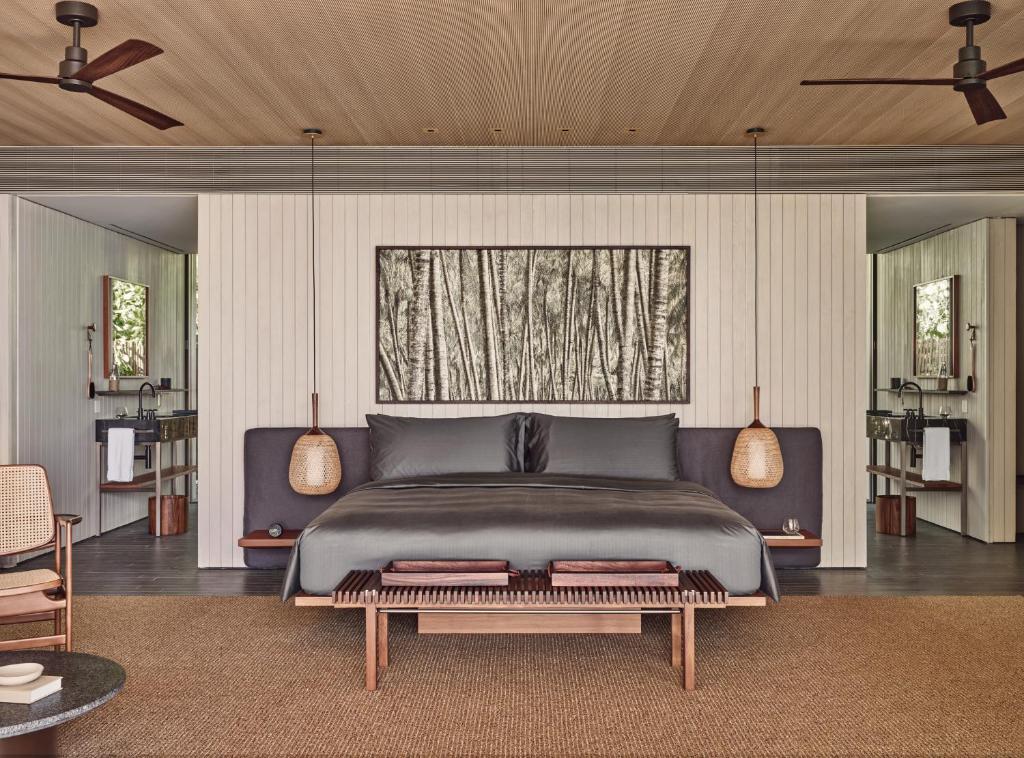 (5 stars)Interactive sculptures and curated artworks accent the spaces in this deeply stylish and contemporary beach resort. Guests are accommodated in 90 Beach and Water Pool Villas each with between one and three bedrooms, or 20 Fari Studios. Patina offers 12 dining concepts (including a beach club, an Aegean kitchen on the sands, a tuk-tuk serving gelato and a Japanese-Nordic fusion restaurant. There’s also a Footprints Kids Club, a dive school by Dive Butler International and a watersports centre. And a calendar of events presents the likes of artisanal craft workshops, holistic healing sessions, modern art exhibitions and themed feasts.
