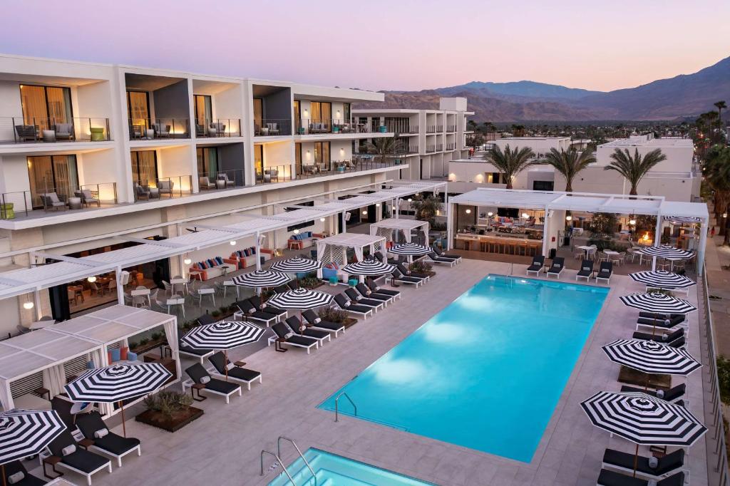 (4 stars)Stretching across two-and-a-half city blocks in downtown Palm Springs, Thompson Palm Springs brings modern elegance, artful expression, and culinary vibrance to the iconic Palm Canyon Drive. With 168 bungalow-style guestrooms, including 18 suites and private balconies, the hotel blends desert tranquillity with mid-century architecture and bold, curated interiors. A separate adults-only enclave, Upper Stories, is set to debut later this year, offering 42 premium rooms, private pool access, and exclusive lounge space.