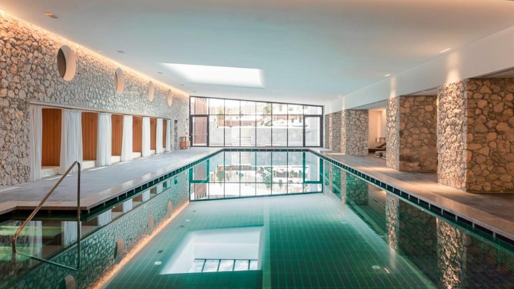 With a focus on well-being, this spa resort encourages guests to enjoy the surrounding beauty, unwind and practise self-care with a range of innovative treatments. A Personal Spa Assistant guides you through your journey. This may include thalassotherapy and treatments in the Hatma Space area of the Massage Zone, featuring a unique ergonomic bed. There’s a jogging track outside and a pool inside, to keep fit during your stay. The decor at Rosapetra revolves almost entirely around light wood, creating a grounding, rustic-chic atmosphere. The hotel’s Corte del Lampone dining room treats food like an art form and there’s regular entertainment by night.