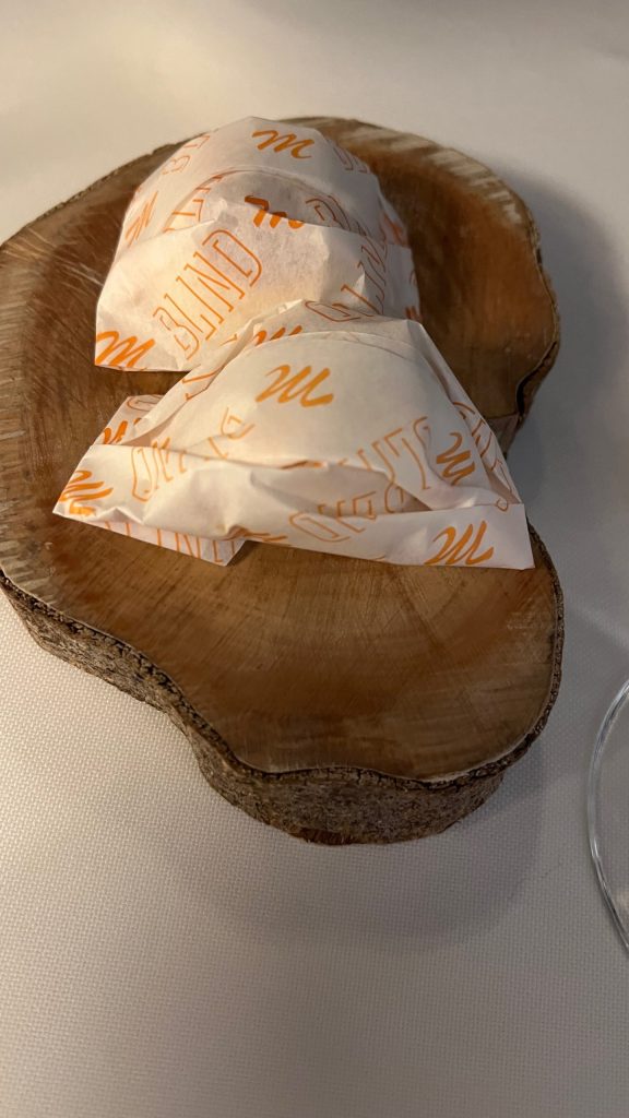 Diners are asked if they have any allergies but are offered no other choice beyond a ten or twelve course tasting menu. And actually, courses aren’t ‘courses’ or ‘dishes’ or defined by ‘starters’ or ‘mains’ or ‘desserts’ but are all ‘moments’. And the ‘moments’ have names which are sometimes poetic and sometimes humorous. And half the time diners are encouraged to guess the ingredients of each ‘moment’ which leads for plenty of back and forth with our waiter César who, much like Wagner, is a non-stop source of cheery information.