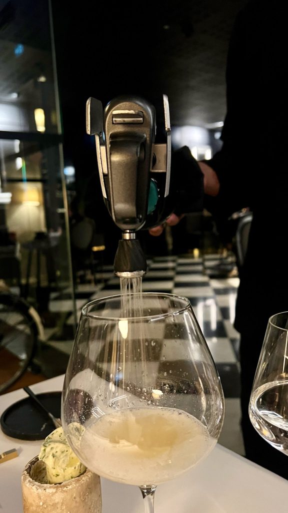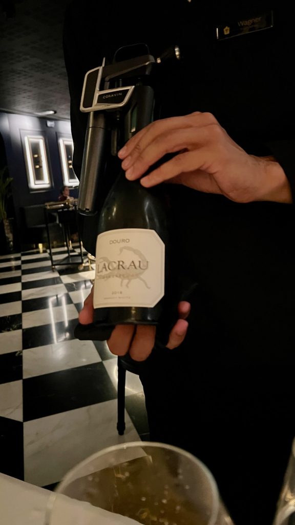 Wagner keeps the wine flowing thick and fast. We have Guri by Vinvevinu, we have Lacrau Garrafeira, we have Vinha Paz Reserva. We have a blind tasting session with the wine, too, where we fail miserably to identify what we’re drinking and then we have wine from a bottle which is never opened. Almost like a magic trick, this is made possible by a Coravin device, specifically invented to pour wine without removing the cork, so that the bottle doesn’t go off if you don’t fancy drinking it all.