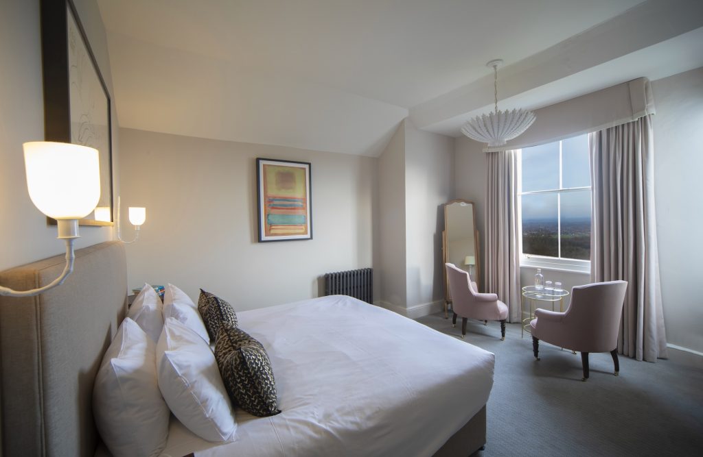 The Malvern Hills rise along the border of Worcestershire and Herefordshire in western England. Perched high on the wooded slopes is ‘Cottage in the Wood’, a historic, hidden-away, luxury hotel on a hill – and the ideal base from which to hike and explore the area, designated one of outstanding natural beauty. The Georgian property comprises thirty-two unique and stylish bedrooms which are set across the hotel’s three properties – the Main House, Beech Cottage and the Coach House. Select rooms in The Coach House are dog-friendly. For larger groups and families, two luxurious, self-catering guest houses are available – The Studio and The Chapel – which are tucked in the hillside just below the main hotel. Many rooms have sweeping and dramatic views of the Severn Valley, Vale of Evesham and the rolling hills of the Cotswolds. Dining is a defining feature of ‘The Cottage’. The award-winning 1919 Restaurant has earned a reputation for refined modern British cooking, with seasonal, locally sourced ingredients shaping elegant tasting menus. The Luxury Editor checked in – read on for the full review.