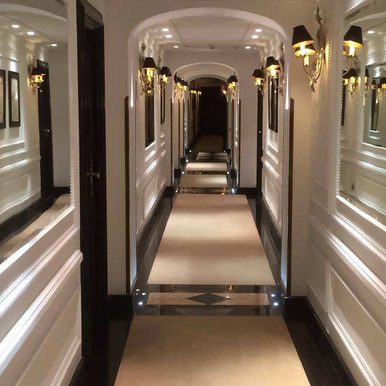 The 4th floor hallways are very elegantly presented – charming and classic yet with a modern monochromatic touch.