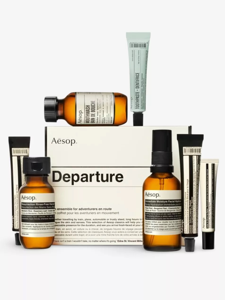 The Aesop Departure Travel Kit is the perfect companion for long flights or short weekend trips. It includes seven essential items, from hand sanitiser to facial mist, designed to keep you refreshed and hydrated throughout your journey. Housed in a compact and stylish case, it ensures your skin stays nourished and clean wherever you go.