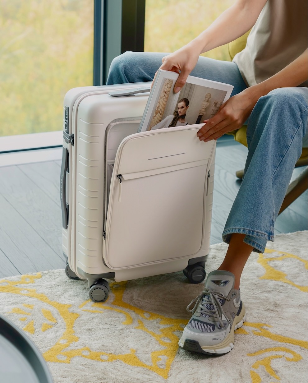Carl Friedrik’s The Carry-On is an example of Scandinavian minimalism at its finest. The suitcase features a strong polycarbonate shell paired with a refined Italian leather trim, providing a contrast between modern materials and classic leatherwork. The luggage includes a well-thought-out interior, featuring a compression pad to reduce the bulk of your items, as well as multiple zippered pockets for easy organisation. The four spinner wheels are engineered to glide silently and smoothly, ensuring that the case is as functional as it is stylish. Its simplicity, combined with the quality of materials, makes this carry-on perfect for the discerning modern traveller.