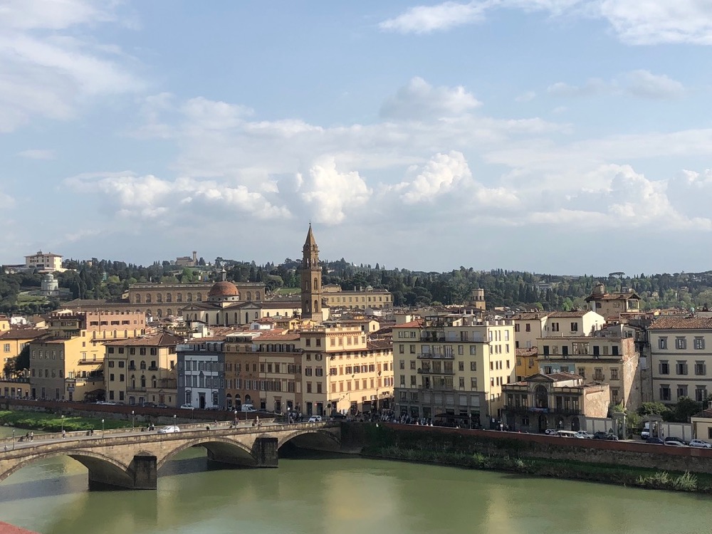I stayed in an elegant Penthouse Suite with chic Florentine decor features including a decorative mirror wall feature, king bed (the Westin Heavenly Bed with designer sheets and down blankets). My suites had a 10 square metre terra-cotta tiled terrace with panoramic view of the Arno River and bridges and rooftops of Florence.